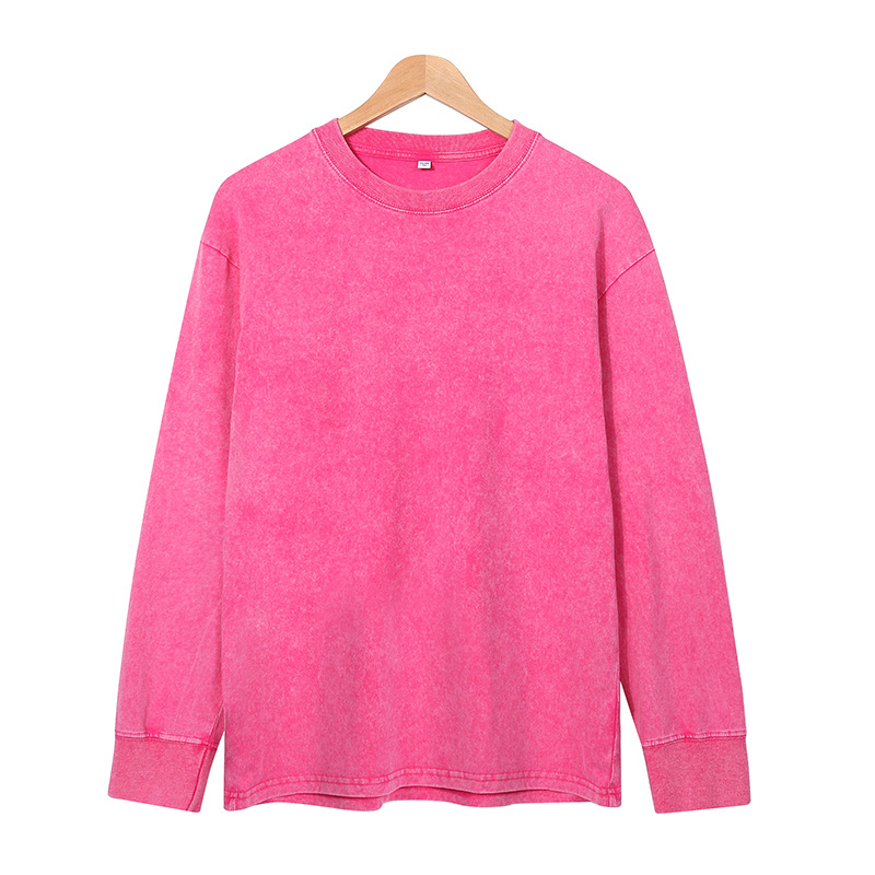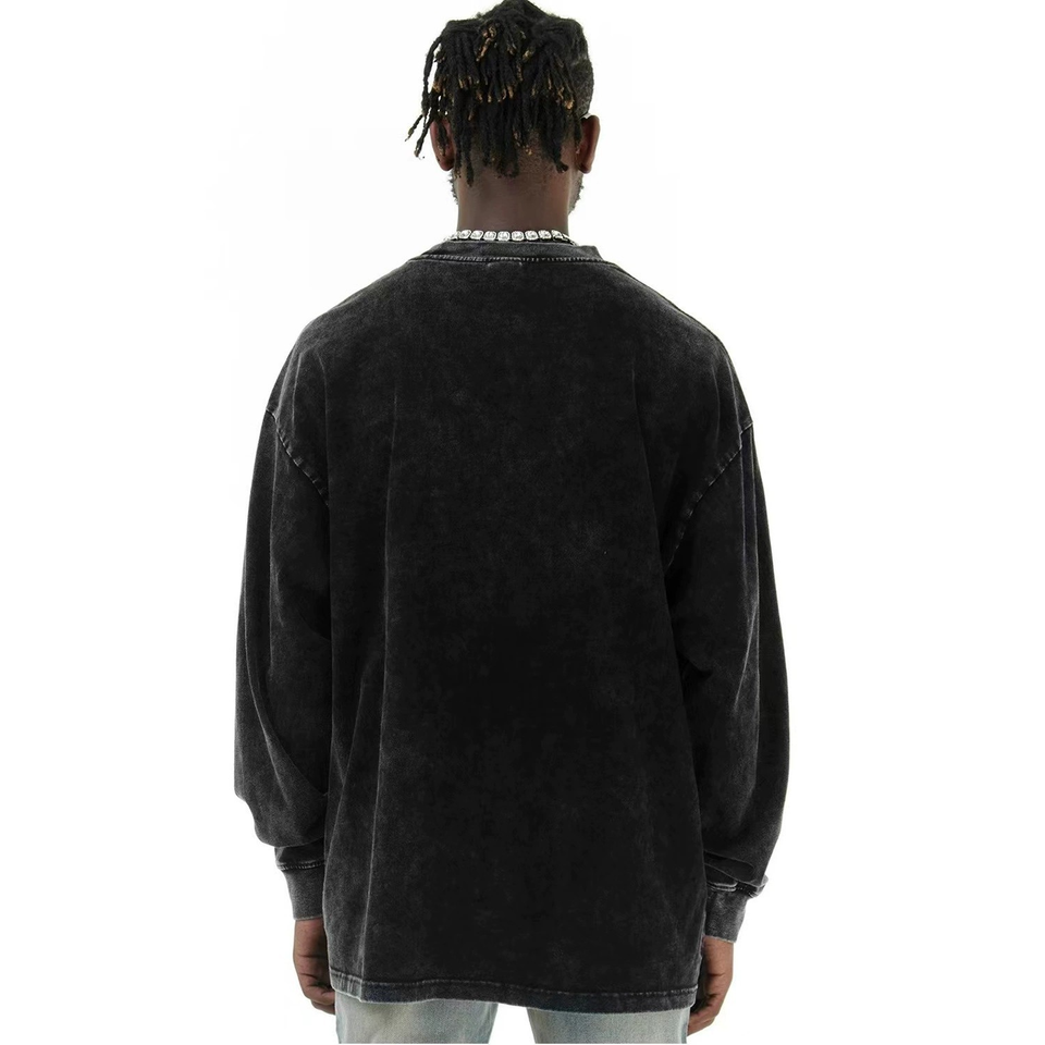 T-shirt à manches longues blanc lavé de haute qualité logo personnalisé 100% coton col rond T-shirt décontracté pour hommes pour hommes