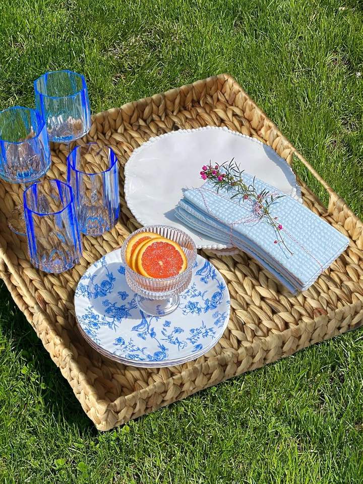 Plateau de service de forme carrée avec poignées