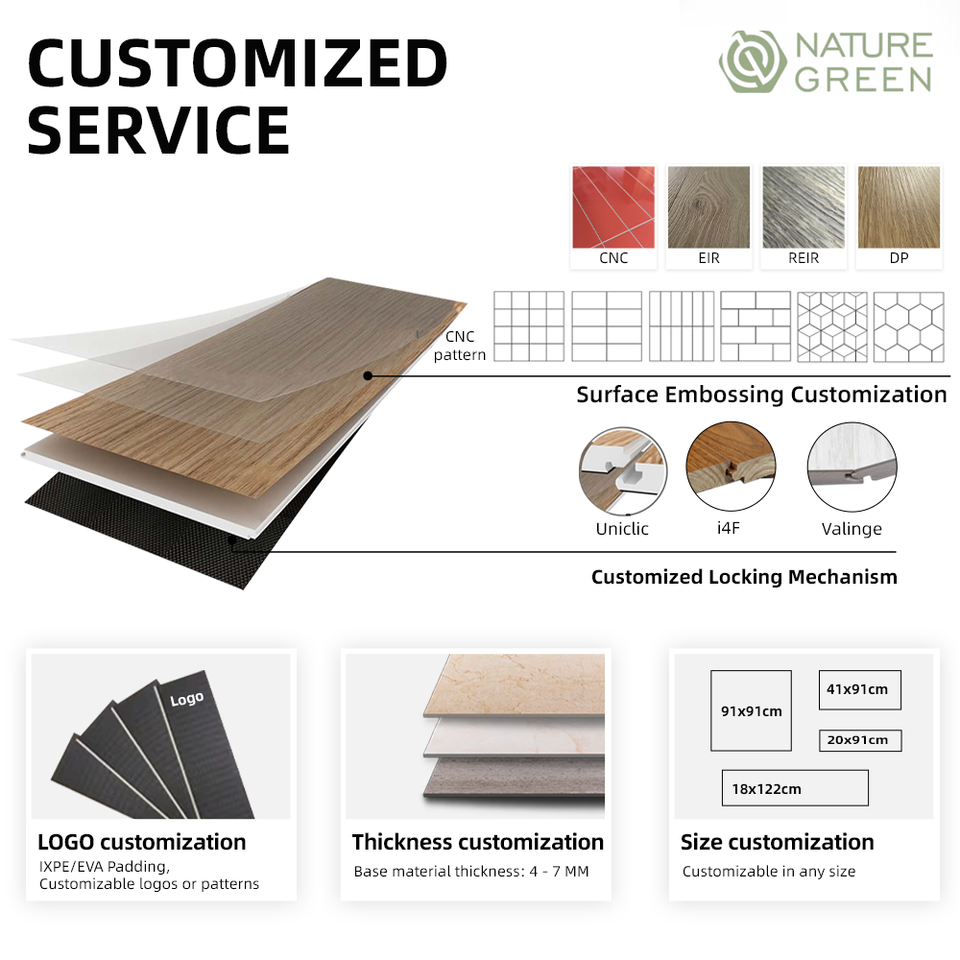 Revêtements de sol en plastique de haute qualité, imperméables, faciles à installer, 5,5 mm, 6 mm, 7 mm, revêtements de sol SPC, revêtements de sol en PVC stratifié