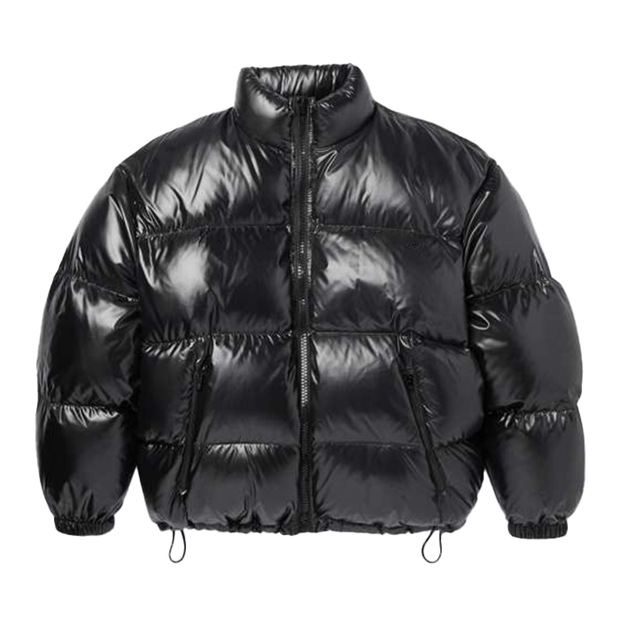 Veste d'hiver matelassée en duvet 100% écologique imperméable de haute qualité, épaisse, noire, brillante, grande taille, décontractée, fermeture éclair, pour homme