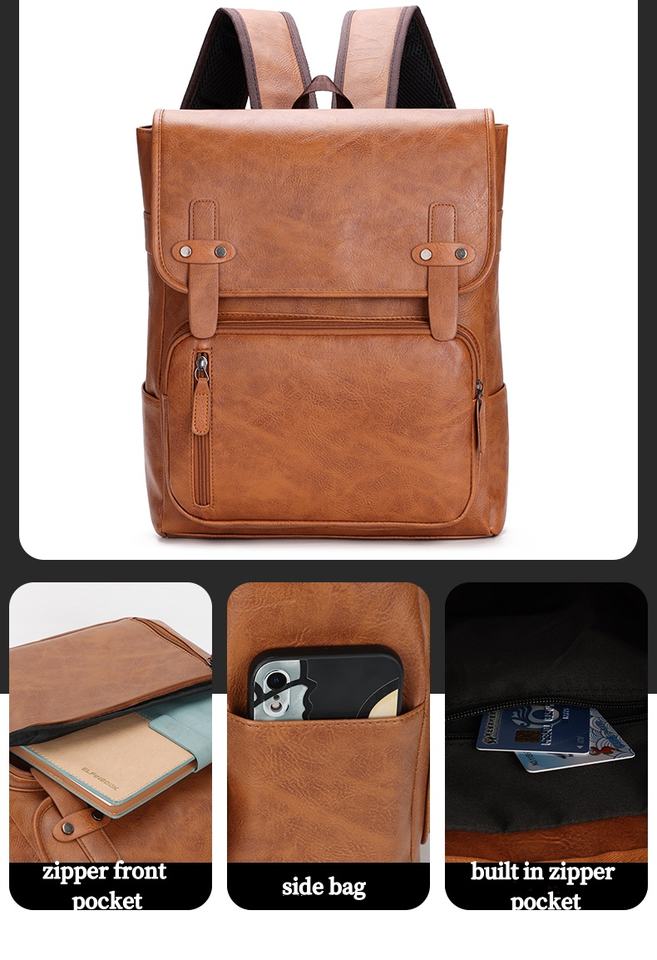 Sac à dos en cuir PU imperméable de haute qualité pour hommes Style Vintage Logo personnalisé fermeture à glissière antivol pour une utilisation été hiver