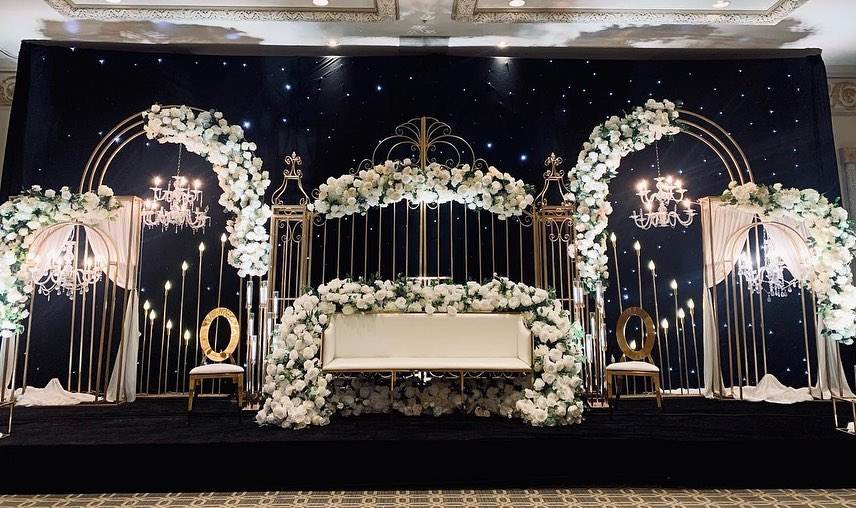 Murs arrière en métal de scène de mariage de haute qualité accessoires en métal de mariage asiatique de bonne qualité murs arrière en métal de scène de mariage anglais
