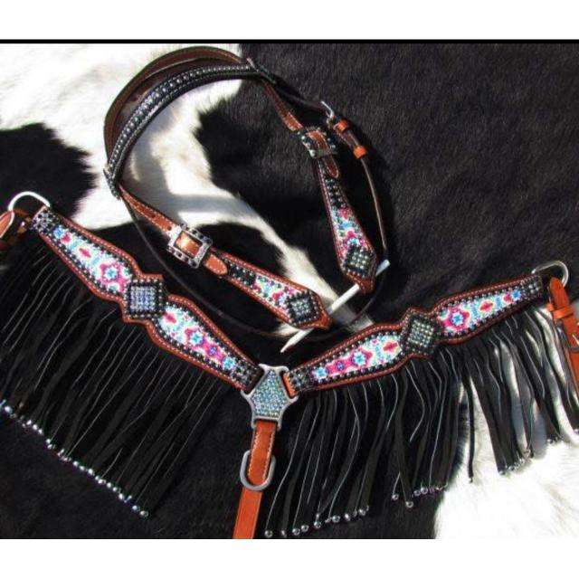 High Quality Western Leather Horse Tack Set Long-Term Durability From Indian Supplier Includes Bridle and Pink Accents