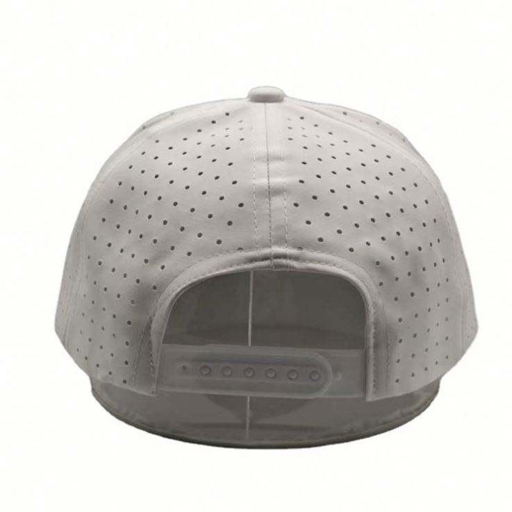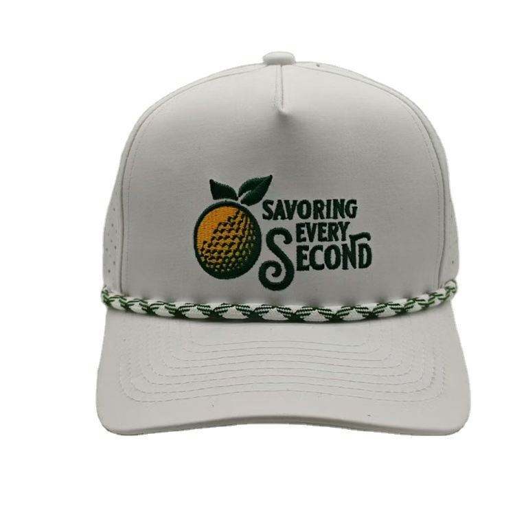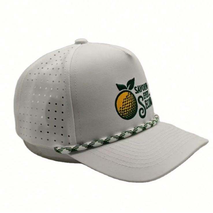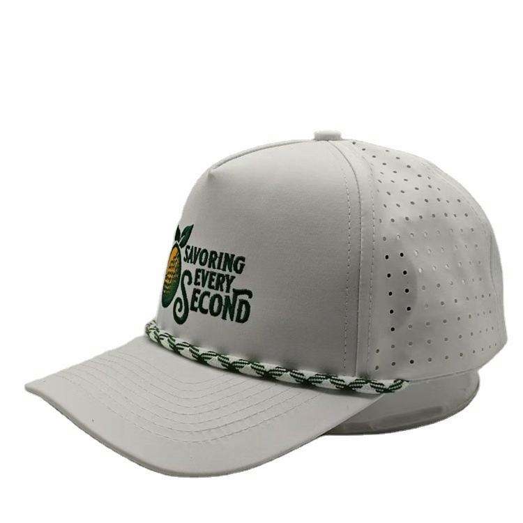 Casquette de baseball blanche de haute qualité avec logo brodé personnalisé, 5 panneaux, trous découpés au laser