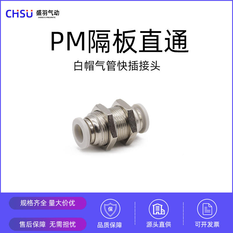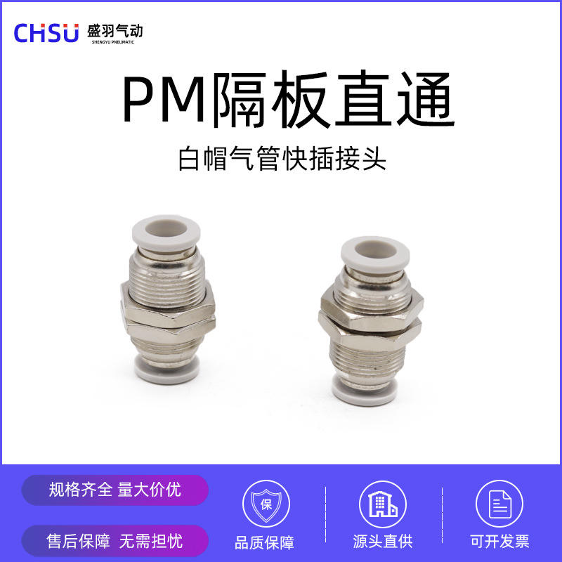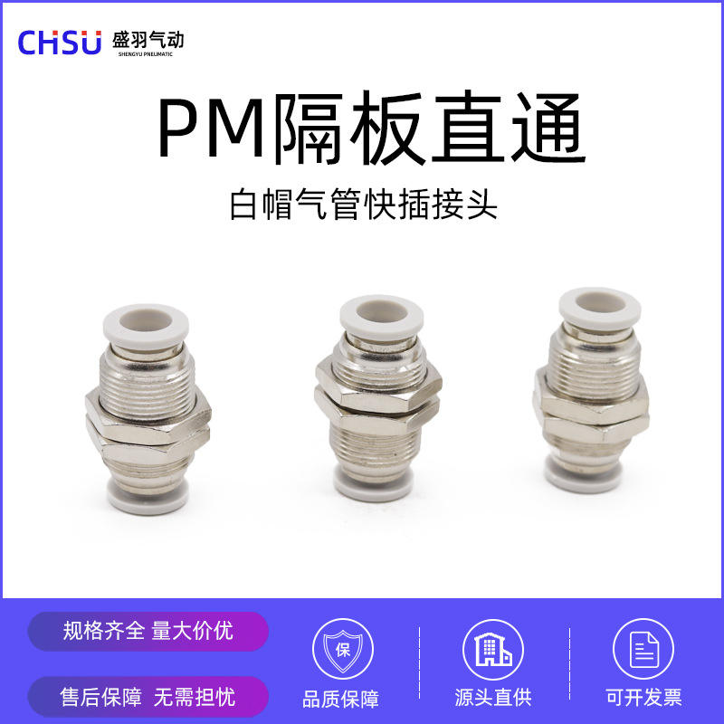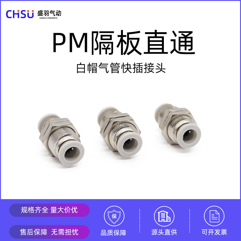 Connecteur pneumatique de haute qualité, blanc, à travers la plaque, droit, à connexion rapide, PM-06PM-08PM-10