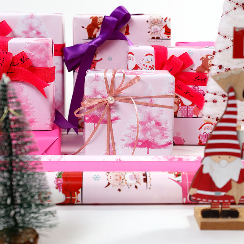 High Quality Wholesale 80g Christmas Pink Art Paper Tissue 43*300cm Gift Luxury Custom Packaging Wrapping Paper Roll