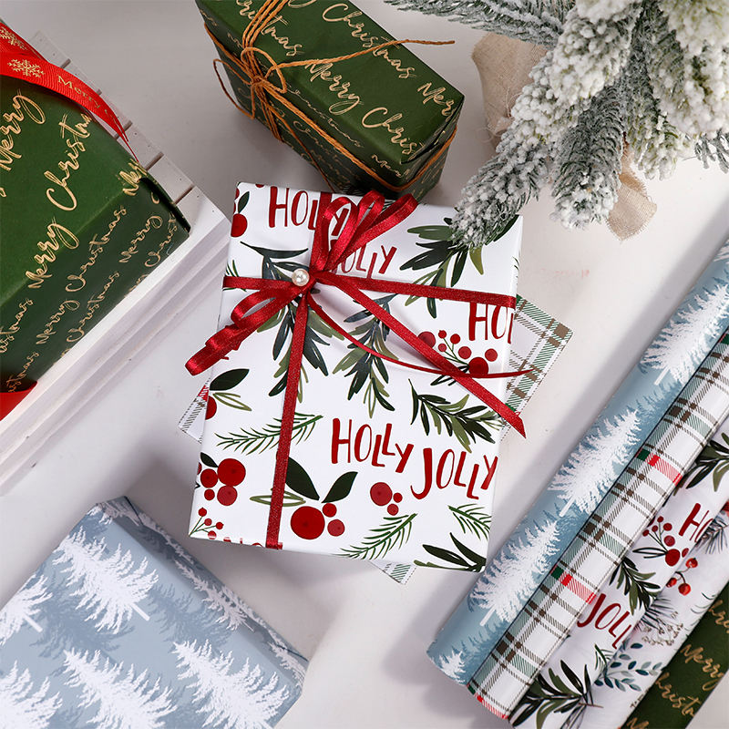 High Quality Wholesale 80g Christmas the Checkered Tree Paper Tissue 43*300cm Gift Luxury Custom Packaging Wrapping Paper Roll