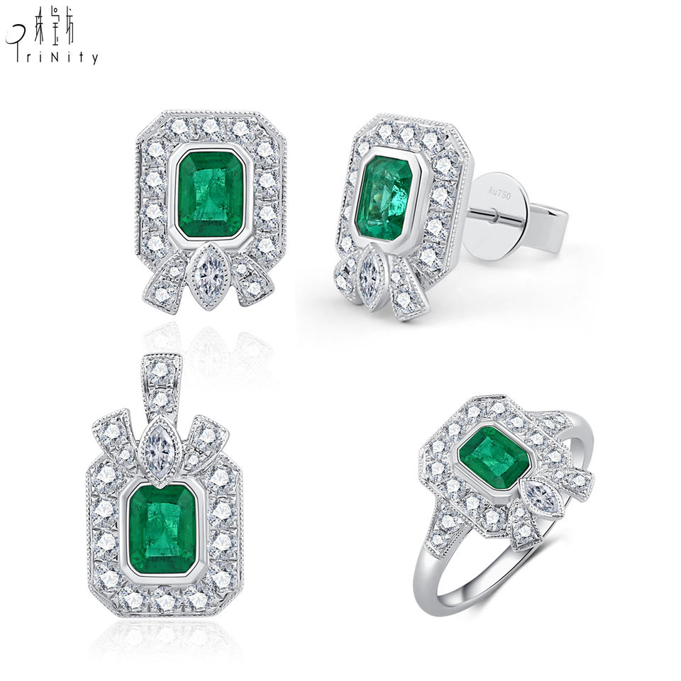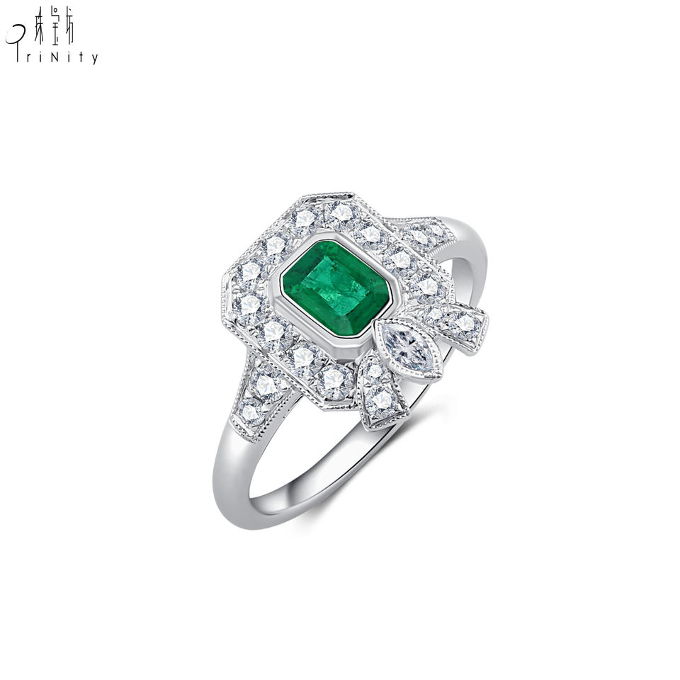 Product Name:18K Solid White Gold Natural Emerald And Diamond Wedding Ring