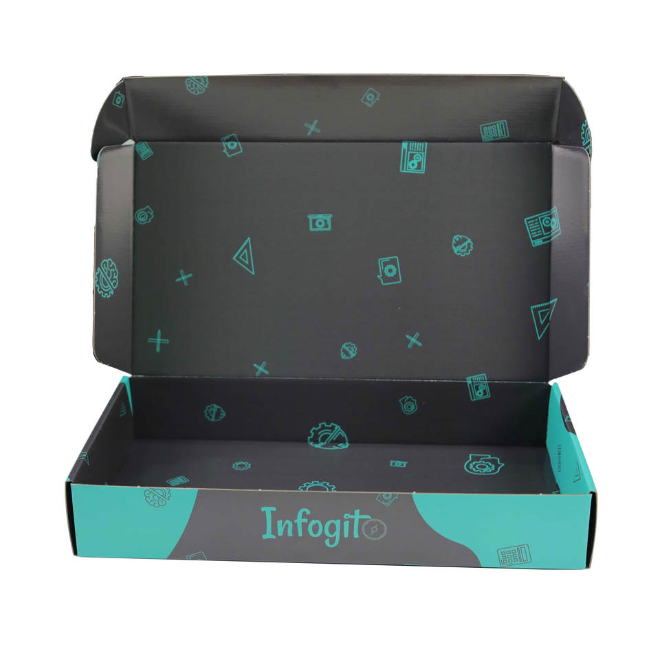 Boîte d'emballage d'expédition en carton ondulé noir et vert de haute qualité, fabrication directe en gros, conception personnalisée, impression de logo