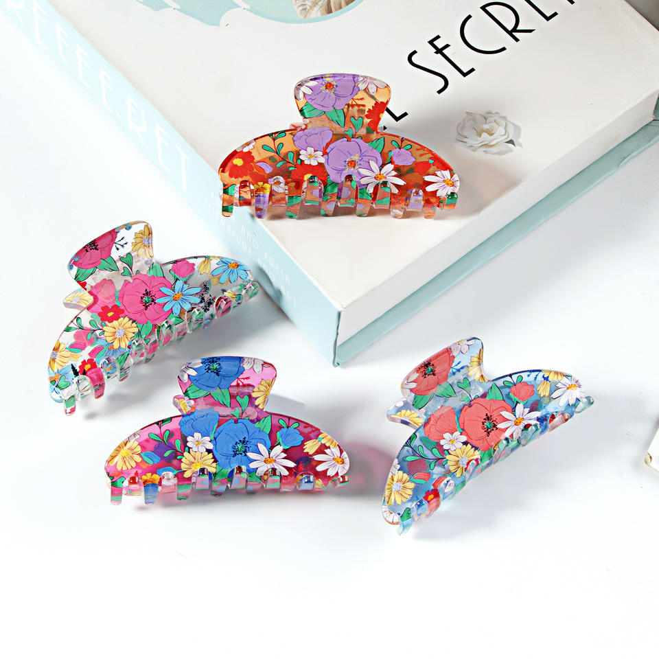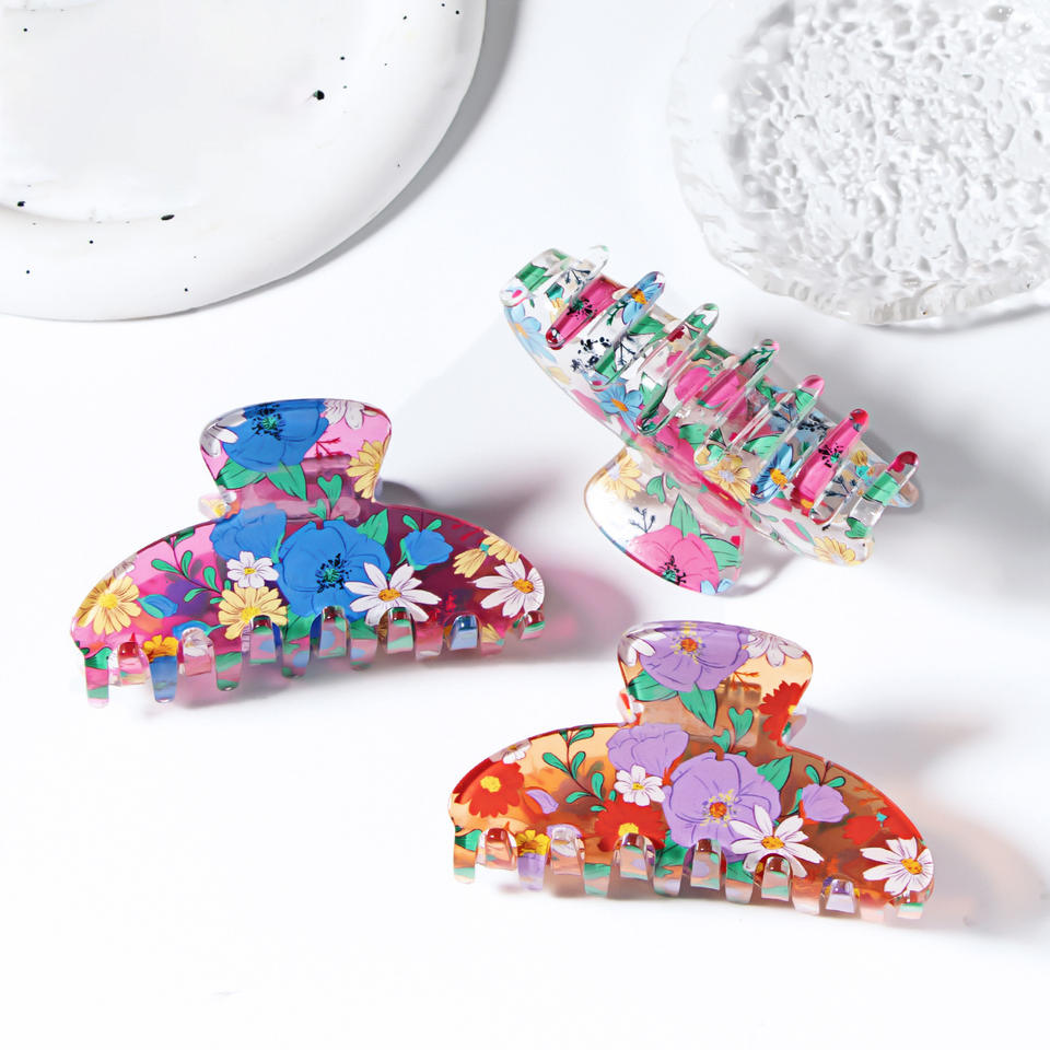 Pinces à cheveux de haute qualité en gros, grandes, style rétro, motif requin avec motif floral simple, pinces à cheveux style rétro doux