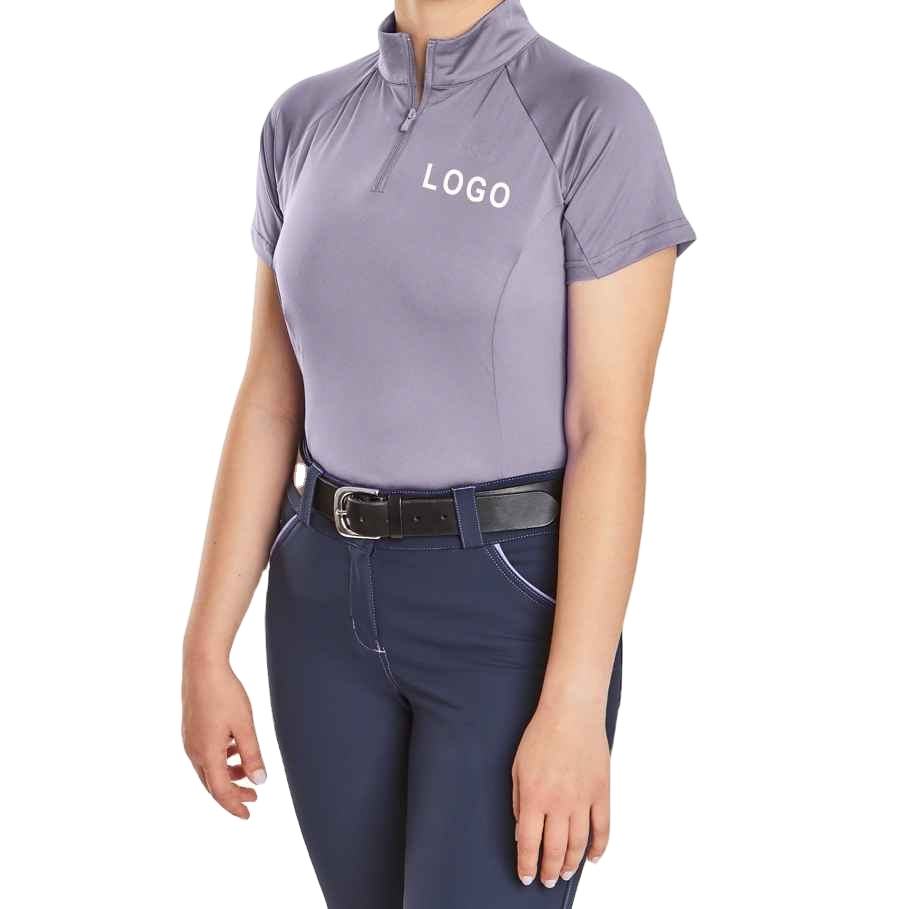 Vêtements d'équitation de haute qualité en gros, hauts d'équitation, logo personnalisé, t-shirt de sport en maille à fermeture éclair pour femmes, couche de base