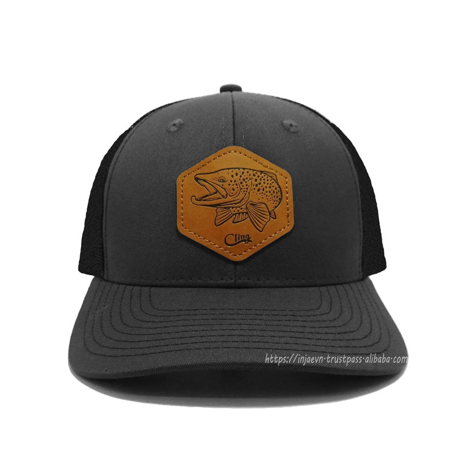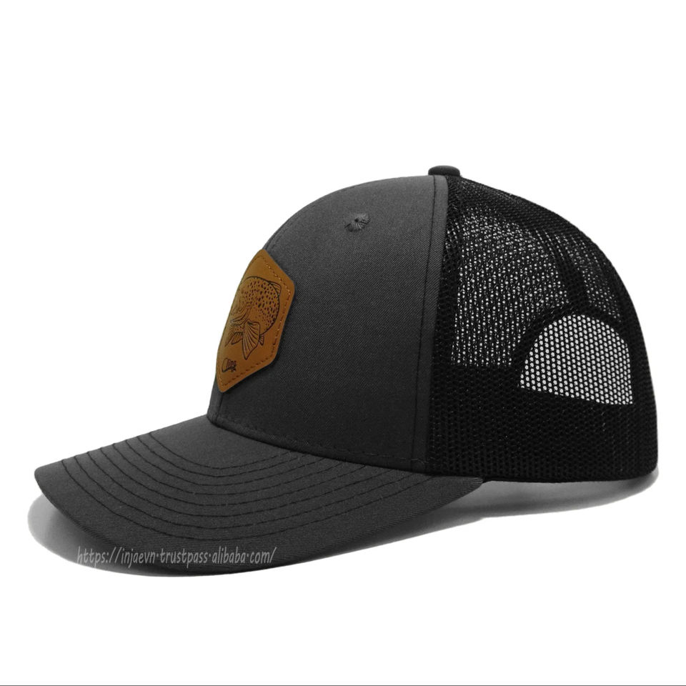 Chapeaux de camionneur pour hommes en gros de haute qualité à la mode pêche en plein air casquette de camionneur avec Logo en relief patch en cuir personnalisé