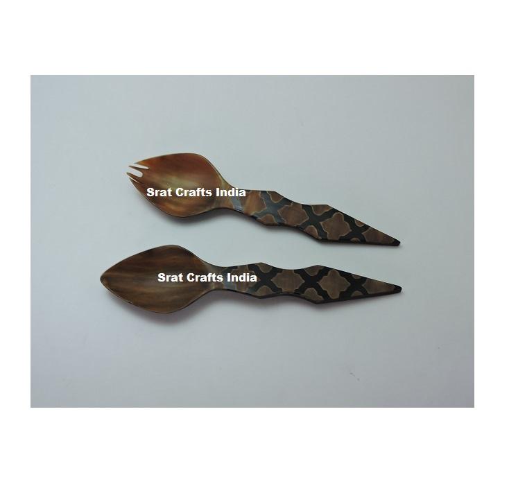 Ensemble de cuillères à salade de haute qualité en gros, modèle noir poli, avec manche en corne, pour la cuisine, l'hôtel, Kitchneware