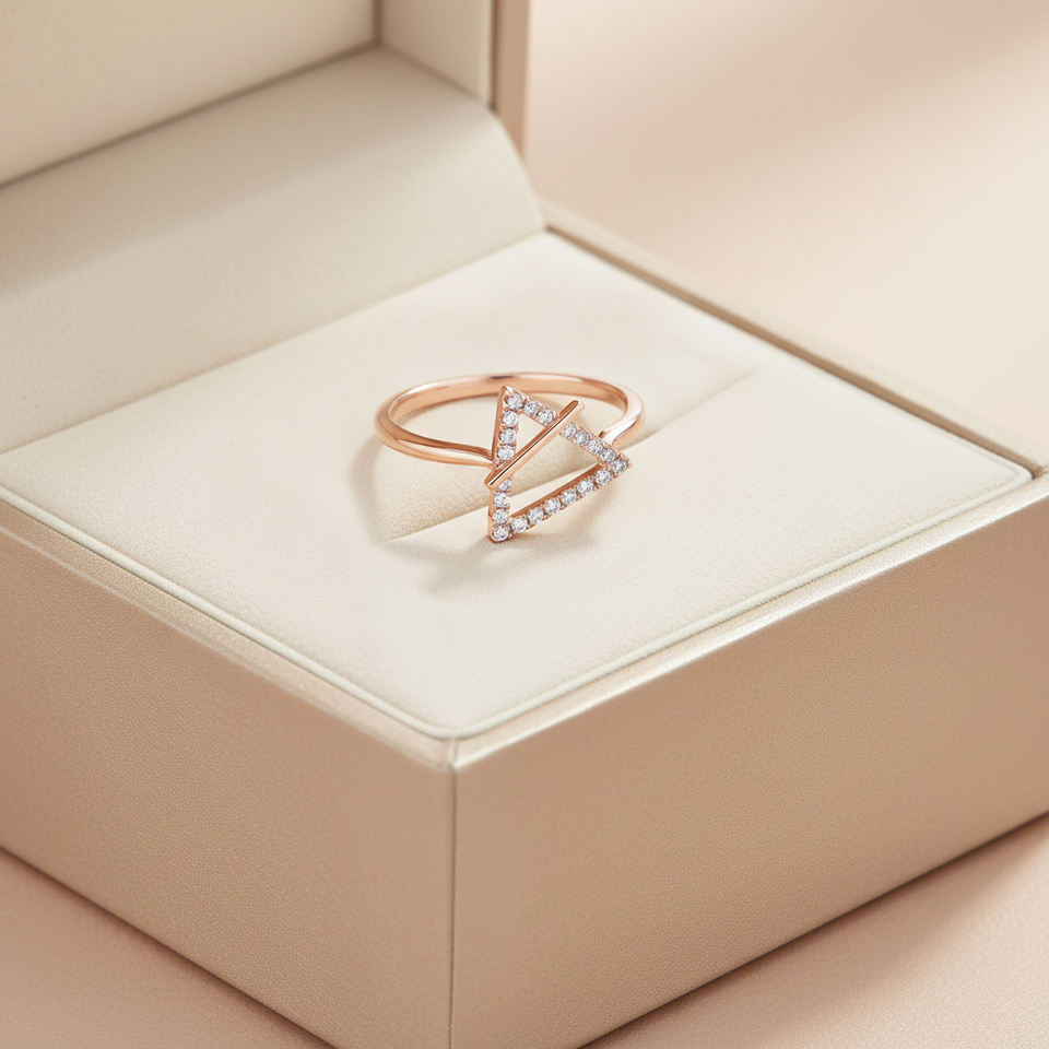 Bague de haute qualité en or rose massif 18 carats avec diamant naturel véritable, design triangulaire moderne, bijoux fins simples pour usage quotidien, vente en gros
