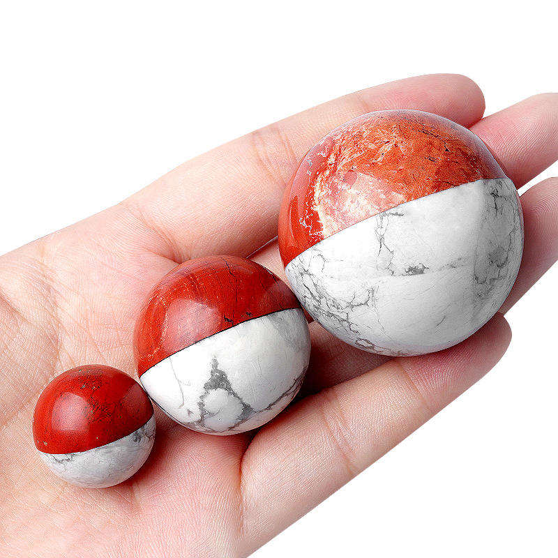 Haute qualité en gros épissage cristal sphère naturel jaspe rouge et Howlite Pokeball pour cadeau ornement décoratif