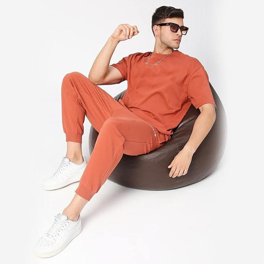 Ensemble de survêtement pour homme de haute qualité, arrivée hivernale, couleur et logo personnalisés, respectueux de l'environnement, avec t-shirt surdimensionné et pantalon décontracté