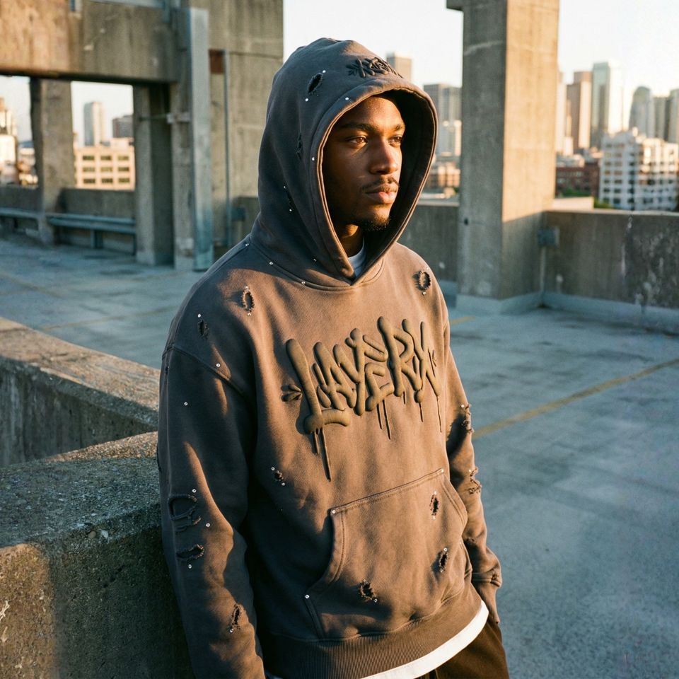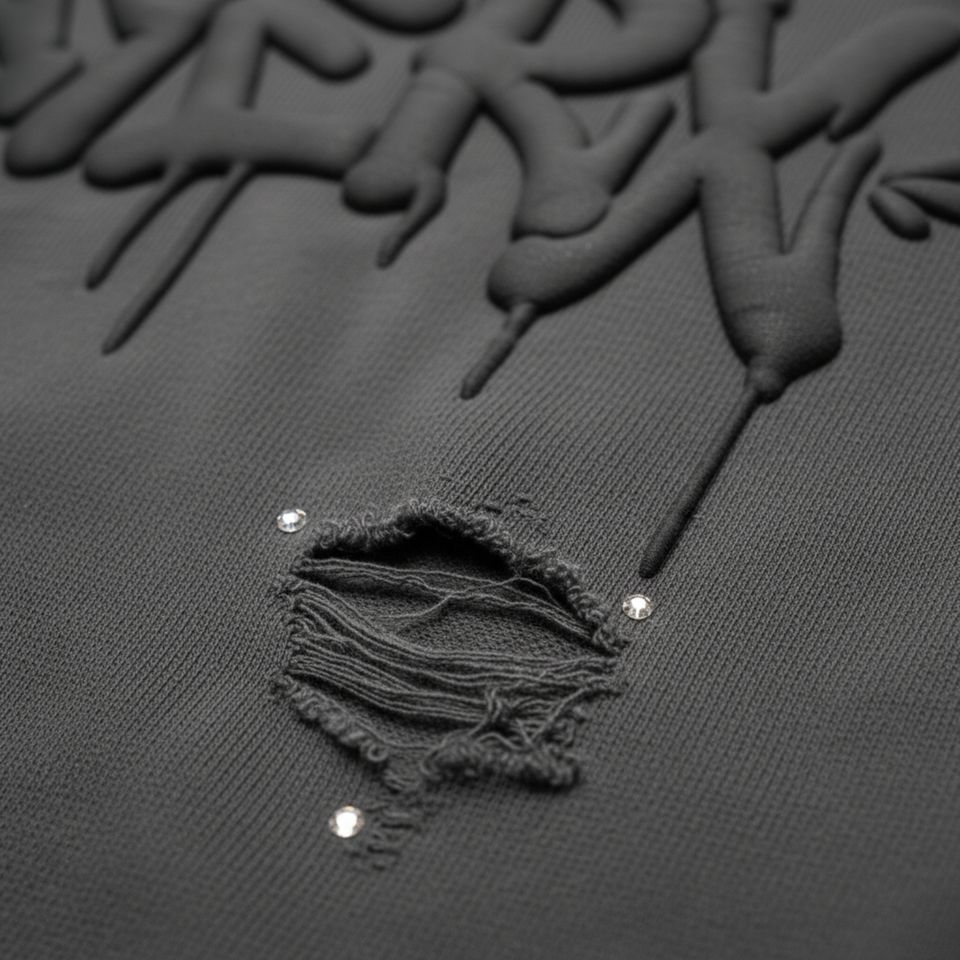 Sweat à capuche streetwear pour homme, de haute qualité, hiver, délavé à l'acide, effet usé, lourd 500 g/m², graffiti, strass en verre, effet 3D