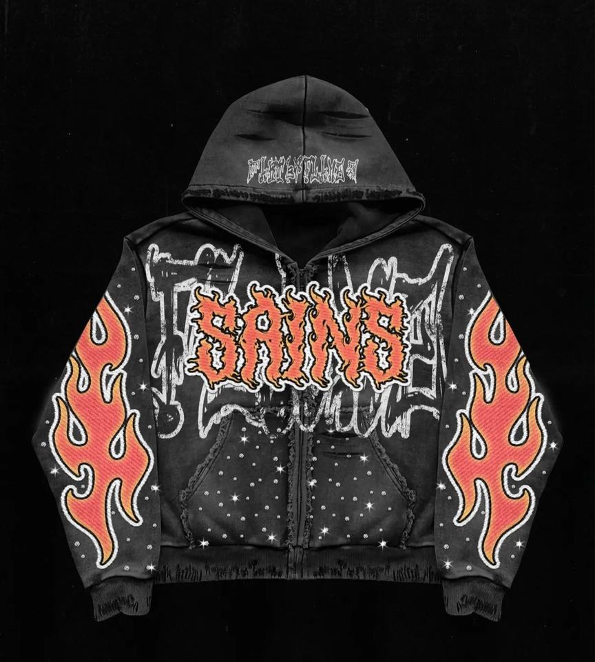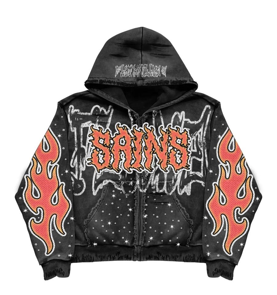 Sweat à capuche zippé pour homme de haute qualité, coupe décontractée, en polyester/coton, coupe-vent, avec broderie vieillie et épaules tombantes