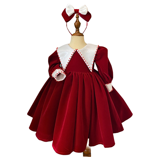 Nom du produit:Hiver-Robe en velours blanc à col pointu
