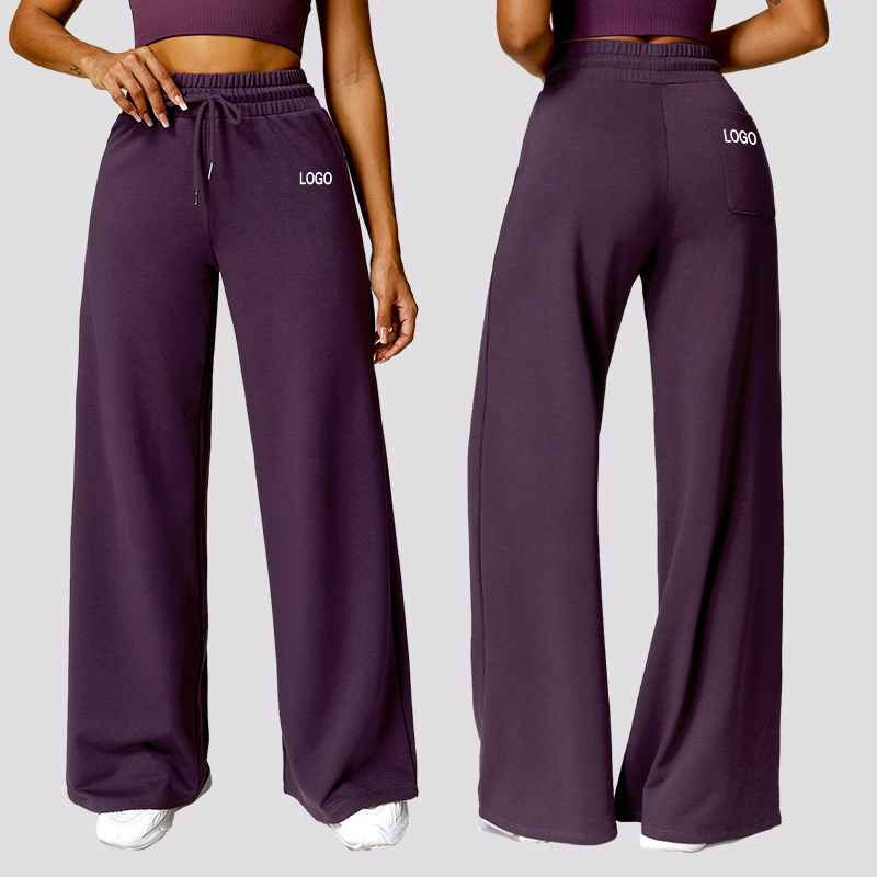 Pantalon de survêtement pour femme de haute qualité, en polyester/coton, respirant, avec dentelle, logo personnalisé, impression, pantalon droit, élastique