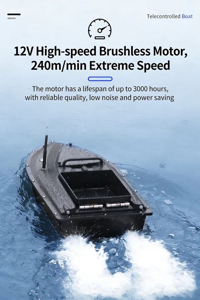 Bateau à appâts télécommandé sans fil de haute qualité, 12V, grande puissance, 240m/min, bateau de pêche à la carpe à grande vitesse, vente en gros