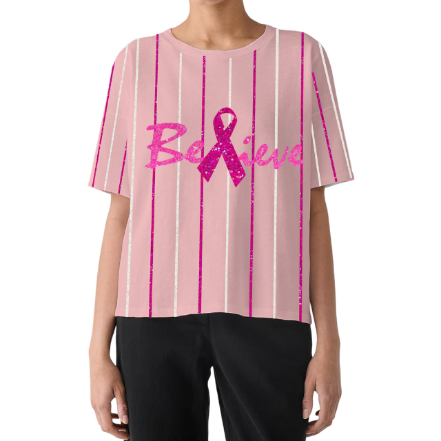 T-shirt de sensibilisation au cancer du sein pour femme de haute qualité Ruban rose 'Believe Faith'-Produit tendance de conception personnalisable