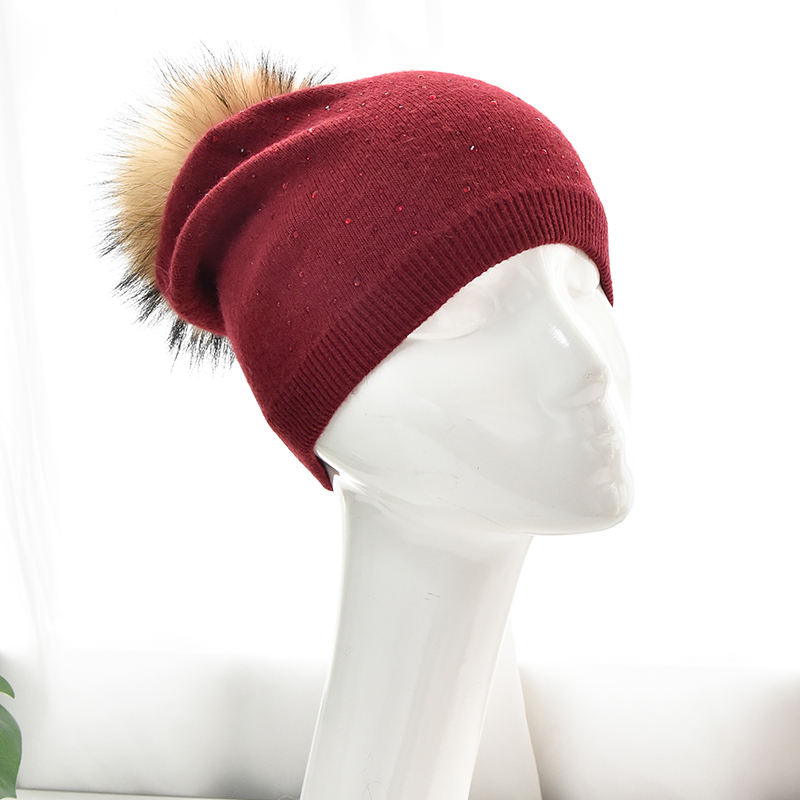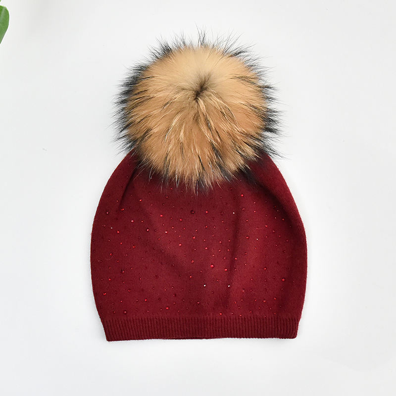 Femmes Hiver Véritable Fourrure Pompon Tricoté Bonnet