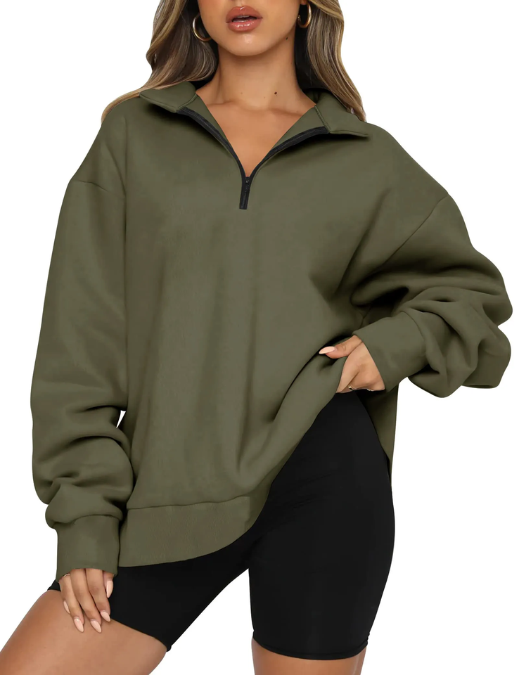 Sweat-shirt à capuche oversize à manches longues en coton uni de haute qualité pour femmes, avec broderie et demi-zip