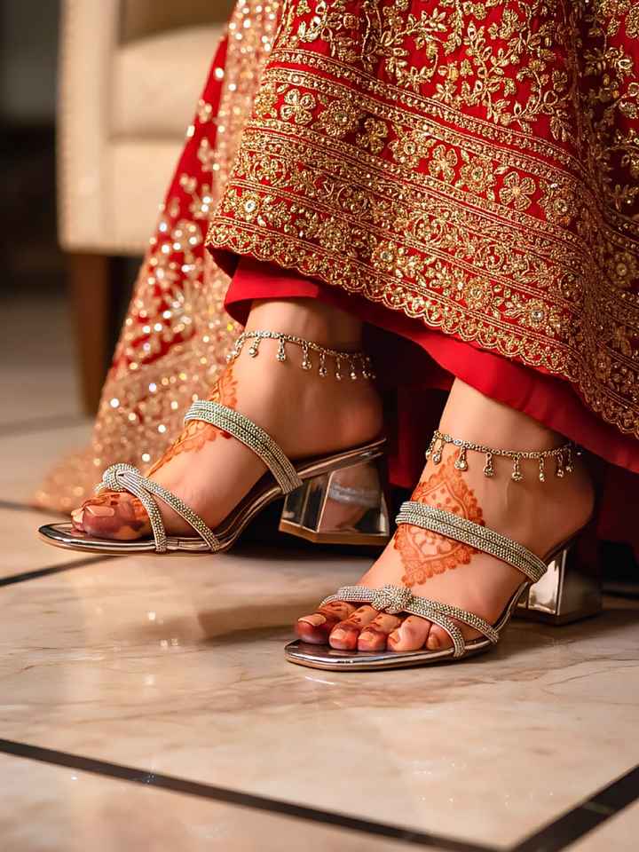 Bloc talon fantaisie mariée sandale avec strass mailleMateial