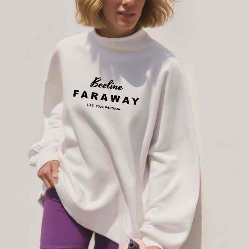 Sweat-shirt à col montant oversize en tricot long pour femme de haute qualité, matière polyester/coton, léger, respirant, personnalisable à l'avant