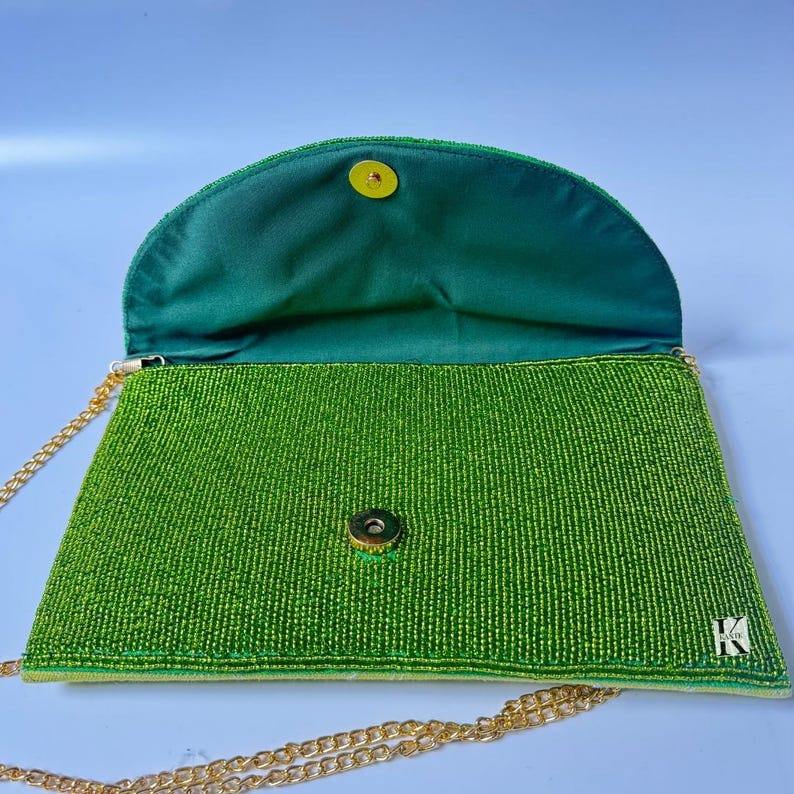 High Quality Women Transparent and Silver Beads Clutch Crystal Beaded Bag