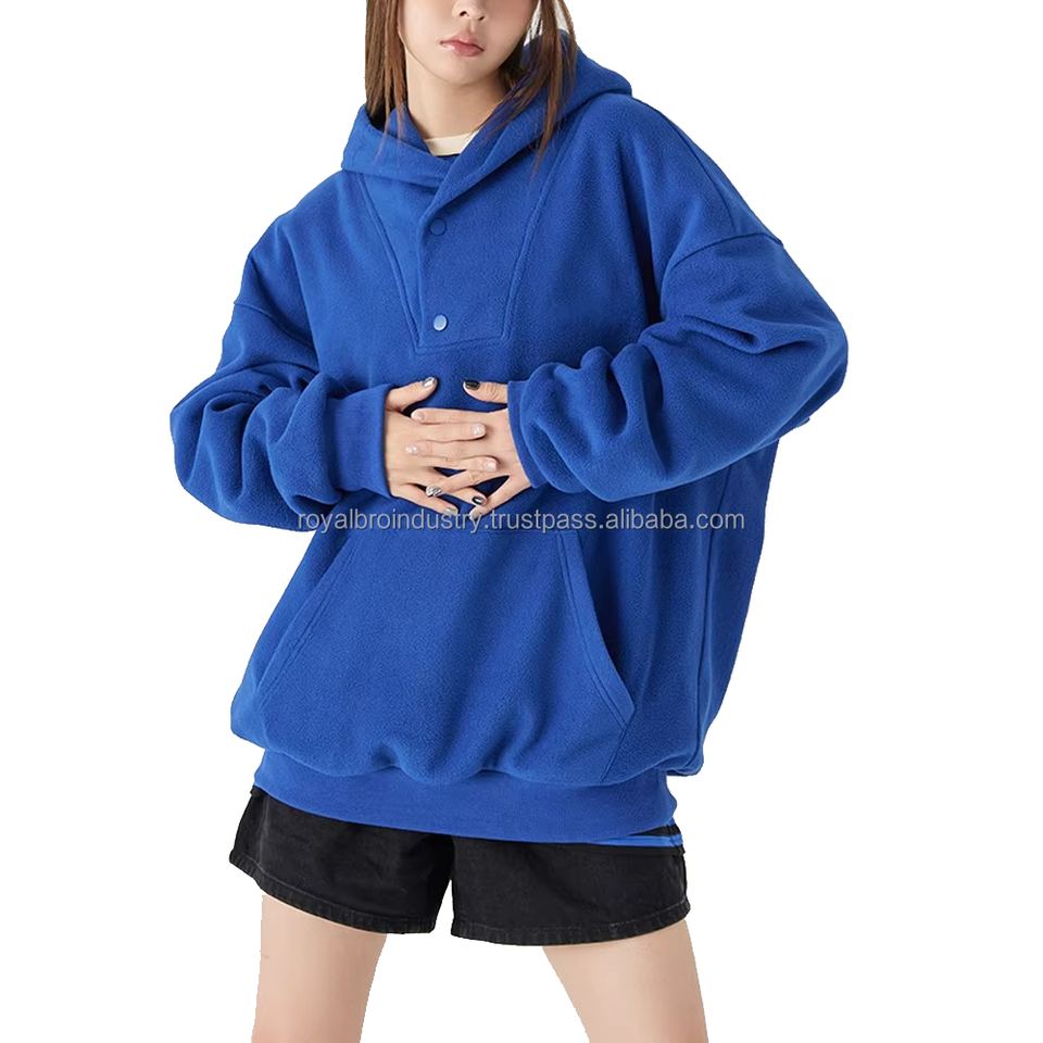 High Quality Women's Casual Hoodie Custom Logo Thickened Polar Fleece Pullover Loose Fit Hooded Collar Latest Design Buttons