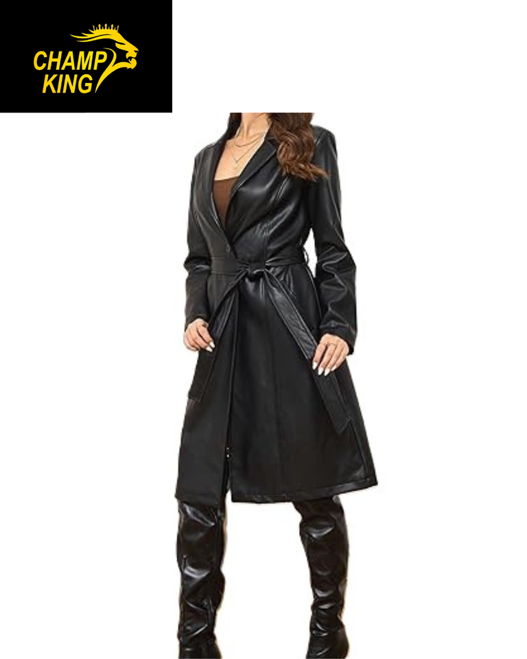 High Quality Women's Leather Long Coats Winter Luxel Leather Layers Buttons Zip Closure