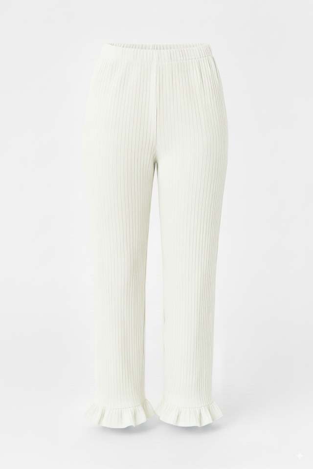 Model Number:RIBBED KNIT RUFFLE HEM PANTS