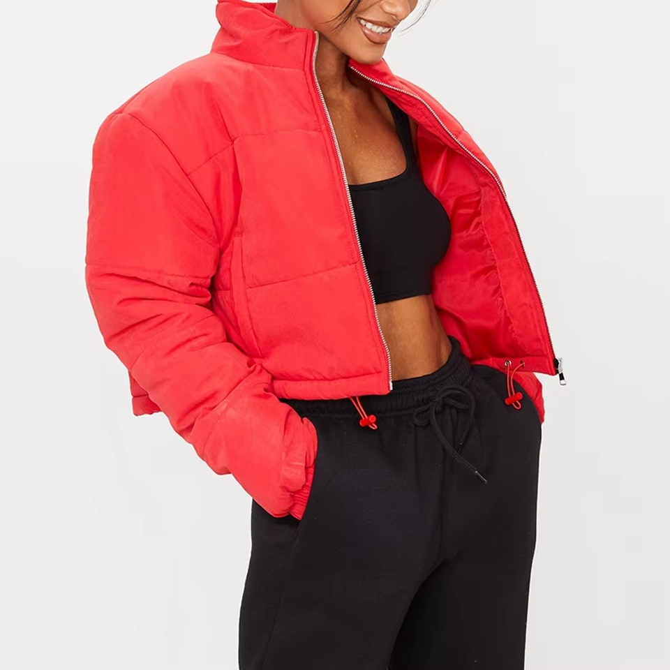 Blouson d'hiver pour femme de haute qualité avec fermeture éclair, logo personnalisé, tissu respirant - Taille plus, couleur rouge, col montant