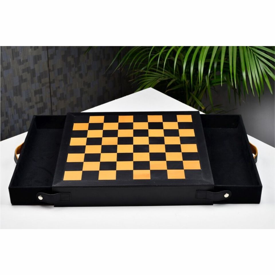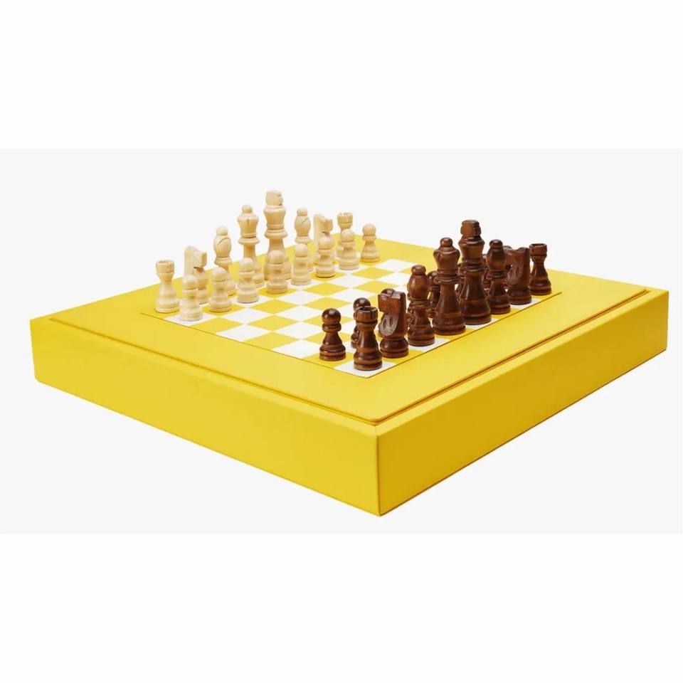 Jeu d'échecs en bois de haute qualité avec étui décoratif en cuir PU jaune, jeu de stratégie intellectuelle classique, cadeau d'entreprise de luxe