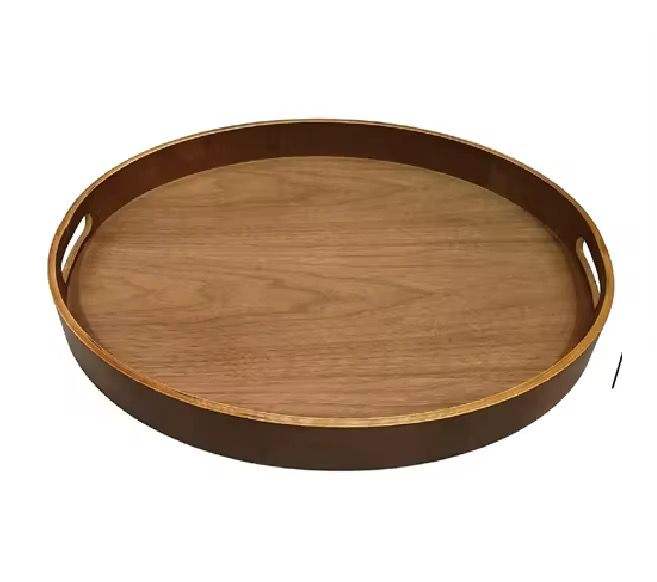 Plateau de service en bois de haute qualité taille personnalisée et Logo petit déjeuner vaisselle plateau d'ustensiles de cuisine avec produit à poignée en métal aspect tigre