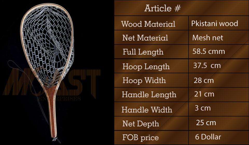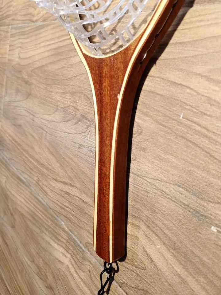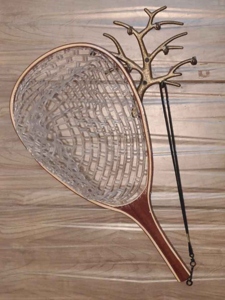 Filet à main en bois de haute qualité pour la pêche à la mouche et la libération de la truite avec un long crochet de suspension élastique profond