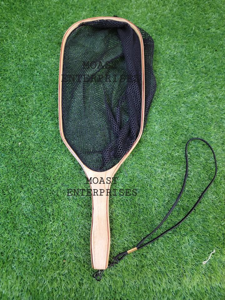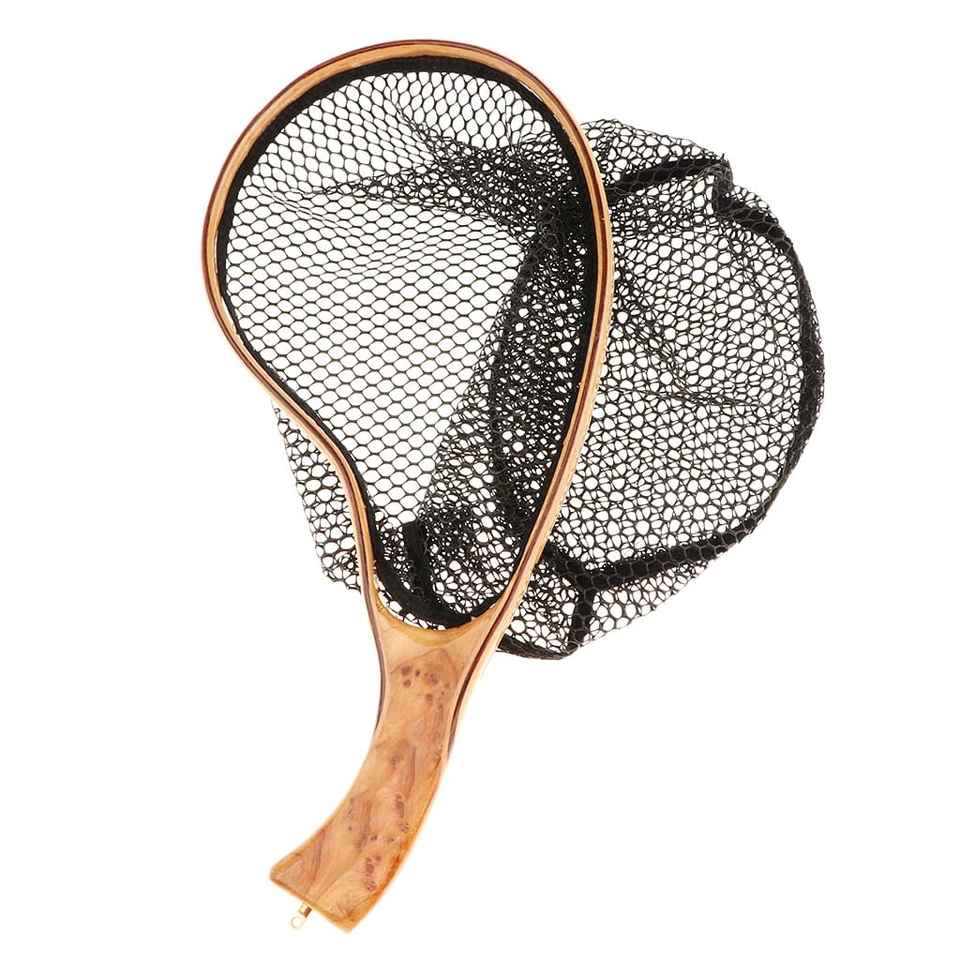 Filet à main en bois de haute qualité pour la pêche à la mouche et la libération de la truite avec un long crochet de suspension élastique profond