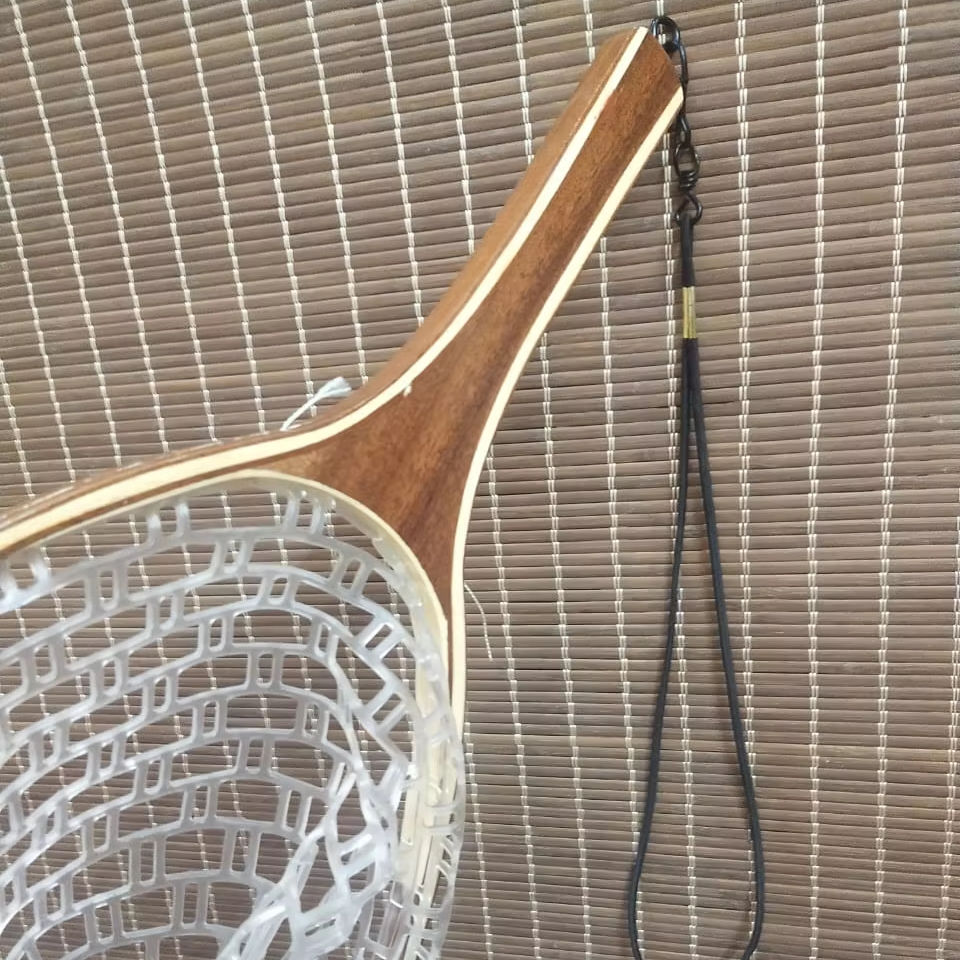 Filet à main en bois de haute qualité pour la pêche à la mouche et la libération de la truite avec un long crochet de suspension élastique profond