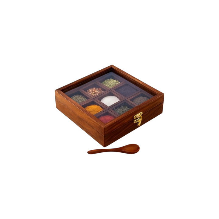 Ensemble de boîtes à épices en bois de haute qualité avec cuillère – Organisateur d'épices pour cuisine, hôtel et restaurant, fourniture directe d'usine