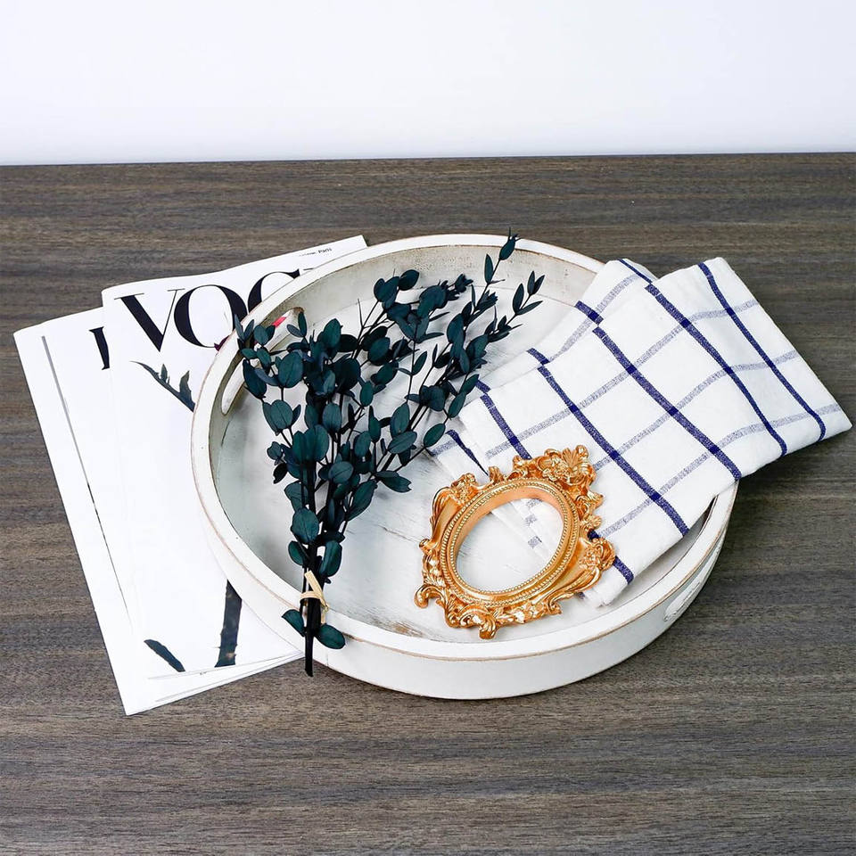 Product Name:Wooden Round Wood Decorative Tray With Handles