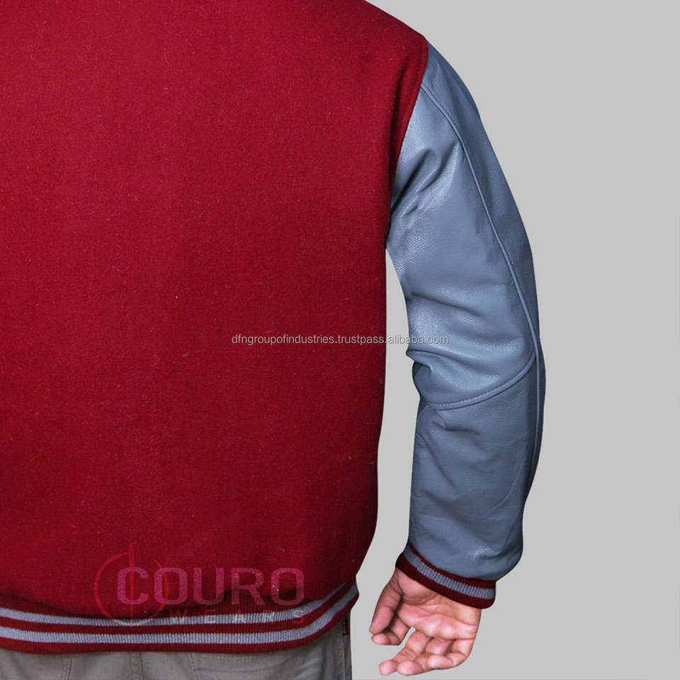High Quality Wool Denim Varsity Jacket Men Custom College Baseball Letterman Stand Collar Reversible Breathable Leather Sleeves
