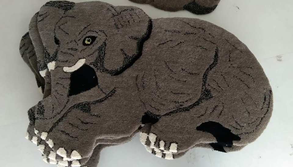 Haute qualité touffeté à la main laine polyester brodé en forme d'éléphant antidérapant intérieur extérieur tapis Design moderne pour la maison