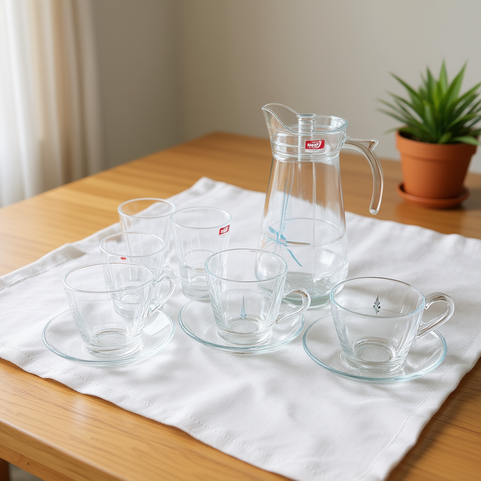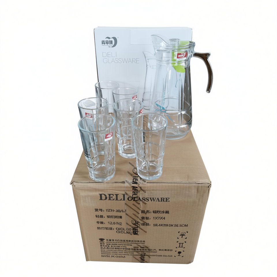 Ensemble de verrerie Suda Resource Sa De Cv Deli, 7 tasses, 1 pichet, verre cristallin, usage domestique