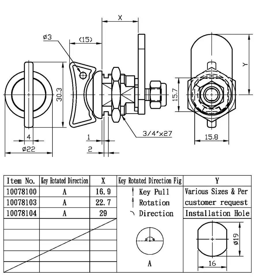 Haute qualité en alliage de zinc métal tiroir armoire clé loquet réglable quart de tour serrure à came