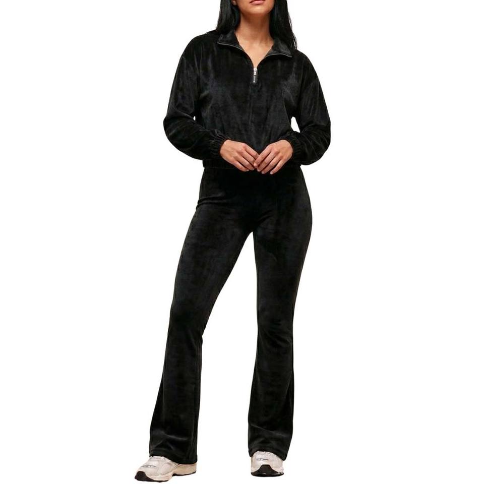 Ensemble de survêtement noir 2 pièces pour femme avec veste zippée et pantalon évasé, style esthétique avec baskets