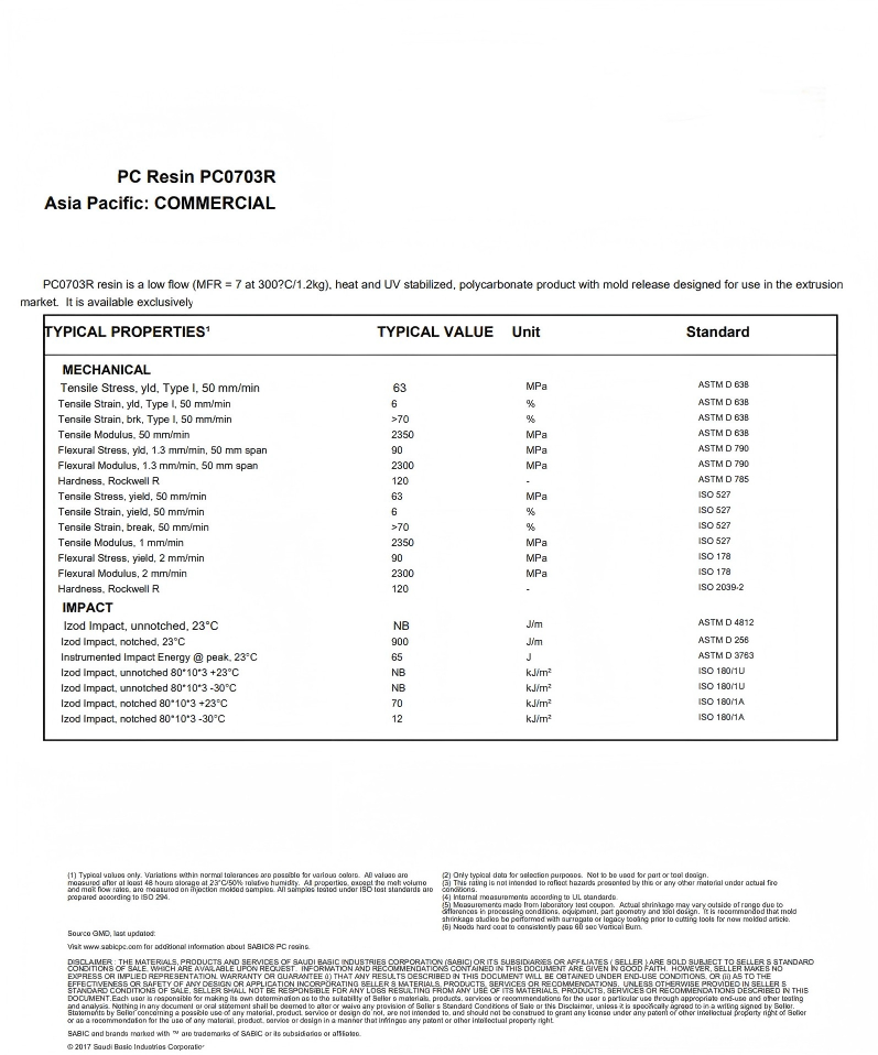 Attribut de matériau:Qualité extrusion Qualité stabilisée thermiquement Qualité résistante aux UV