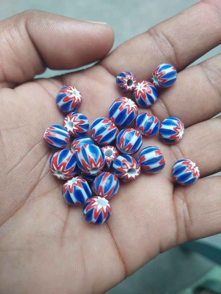Perles Chevron de haute qualité en forme de tambour pour créateurs de bijoux perles de verre et de lampwork en cristal rayé rouge blanc et bleu