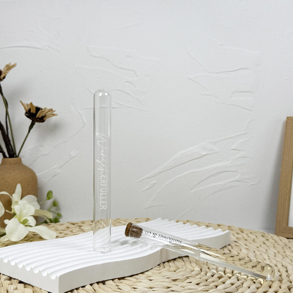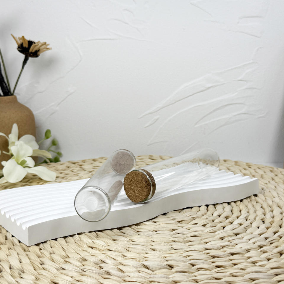 Tube à essai en verre avec logo personnalisé transparent de haute qualité à fond plat avec couvercles en liège